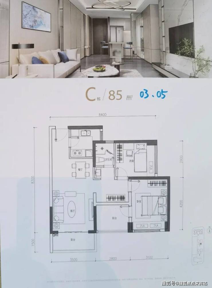 C座03、05户型:85㎡ 3房2厅1卫