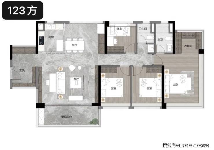 南北对流,主卧超享U型衣帽间