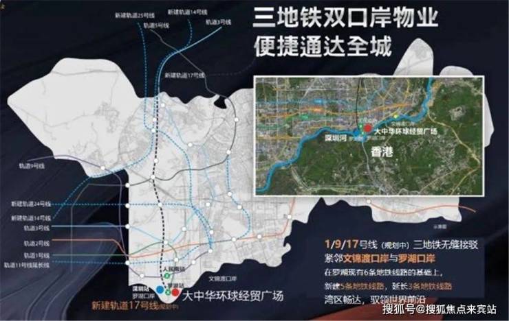 口岸于一体,高效通达全球。三地铁上盖,9号线人民南站和1号线罗湖站