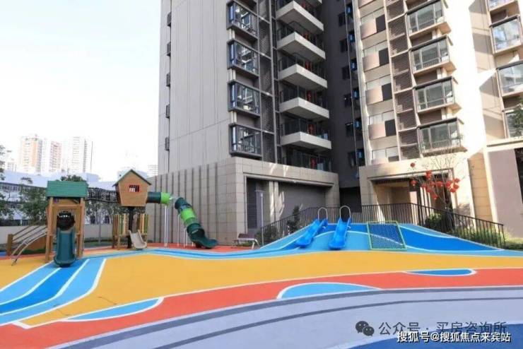 深业云筑聚焦0-13岁孩童全成长周期,以缤纷多彩的颜色碰撞构筑社区宽敞的孩童玩乐区,在斑斓多彩的空间,创享无忧时光嬉戏奔跑、滑滑梯,泳池戏水……