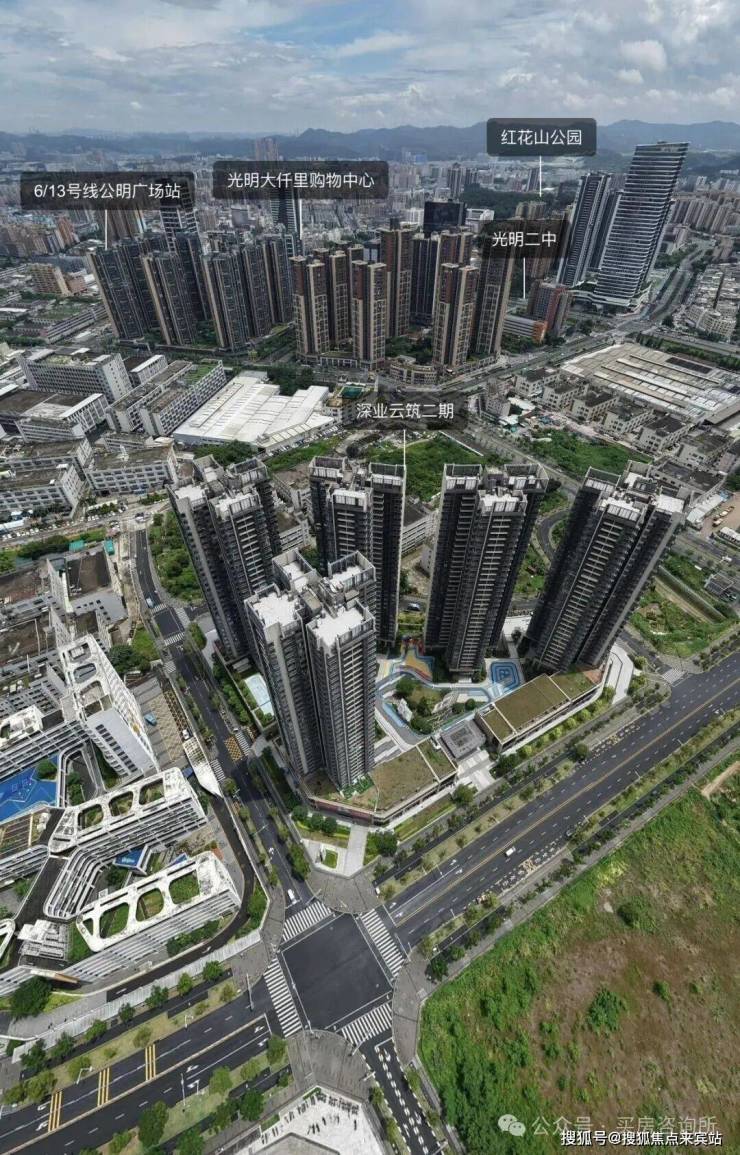 .深业云筑,位于光明的公明板块,这里既是光明生活氛围比较成熟的片区,这里拥有大仟里商业综合体,光明高中园,周边还分布有光明区文化馆、红花山体育中心,地铁13号线新庄站约700米,这是深业进入光明的首个云系产品,也是公明片区继2019年宏发天汇城后,又一个建面超30万㎡的大盘。