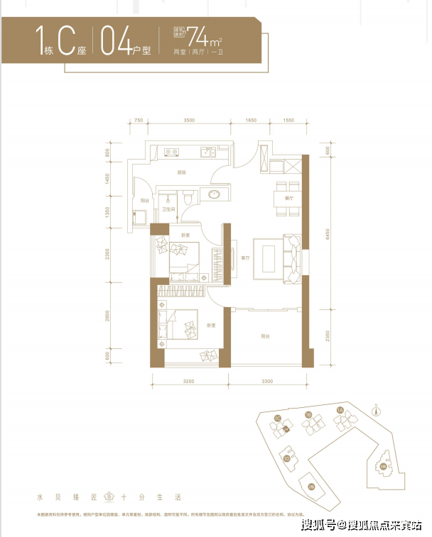 _约73-74㎡ 2房2厅1卫