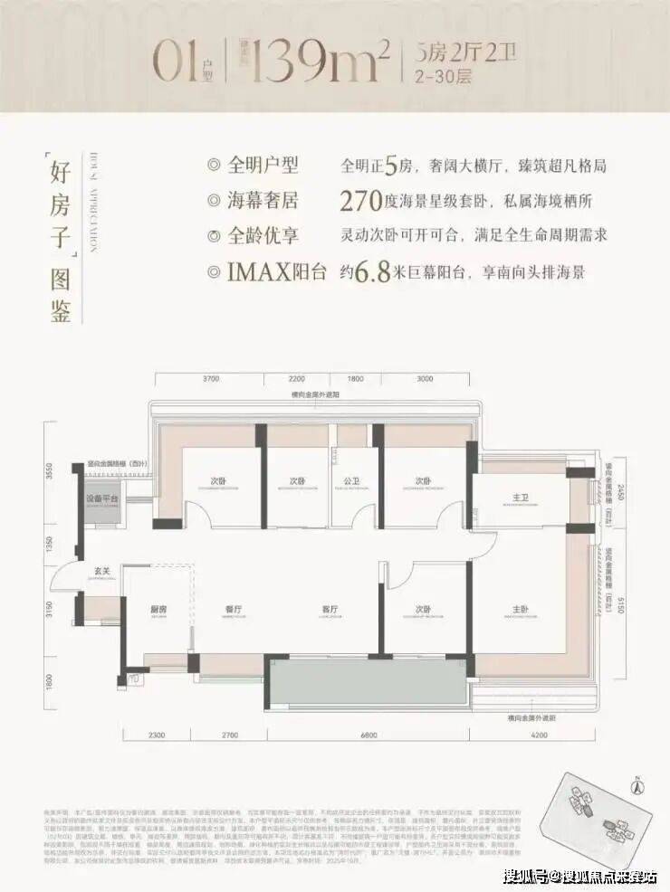 户型为113㎡四房114四房和139㎡五房约290套,2栋100米内30层住宅,2梯5户,其中主力为113㎡四房,整体以朝南及西南为主,有两套朝东北面向金众。