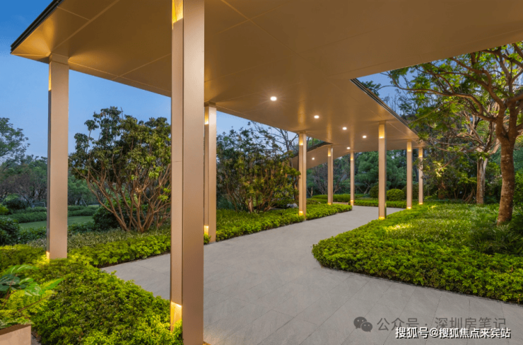 园林由深圳新规住宅规范参与者华森设计操刀,在有限空间里做出了约1.3万㎡的现代东方美学台地式园林。
