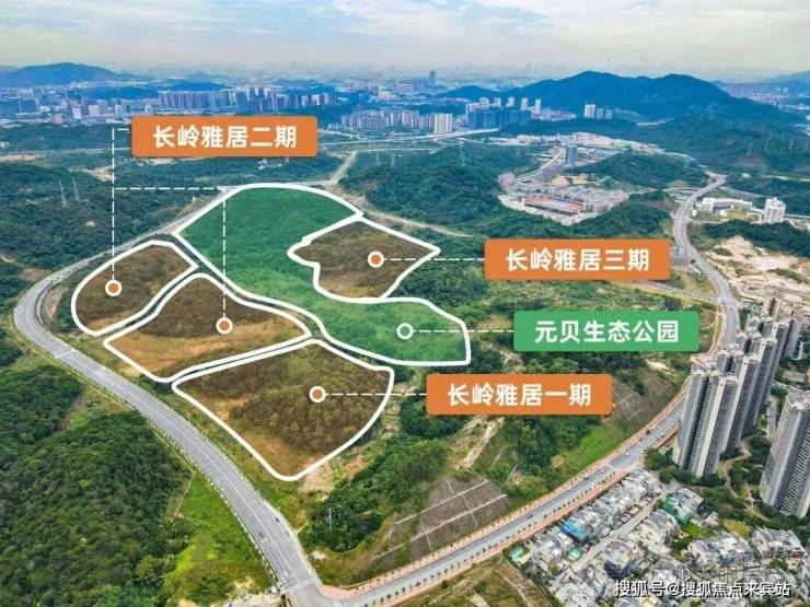项目规划 5 大地块,环抱元贝生态公园而建,内园外山,帽峰山、萝峰山风景尽收眼底,东南向林地未来或将规划国家荔枝公园。