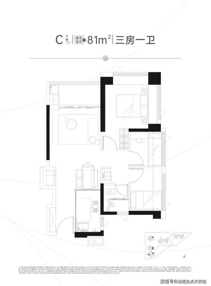 81㎡的3房2厅1卫,C户型,设计的是竖厅格局,客厅实测3.21米开间,LDKB一体化,S墙设计预留冰箱卡槽位,动静分区,3个卧室分别做到了主卧11㎡/次卧5.6㎡/次卧4.71㎡(去掉墙体,实测面积),L型厨房,卫生间三段式分离,西南或东北朝向。