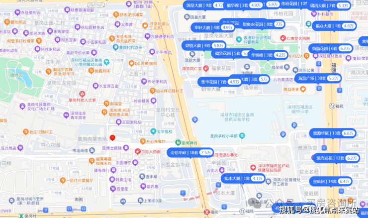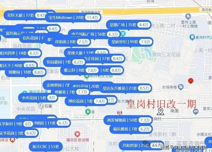 皇岗村改造项目,位于福田福民路与皇岗二街交汇处西北角,紧邻深圳地铁7号线皇岗村站,地处深圳中心的核心腹地。