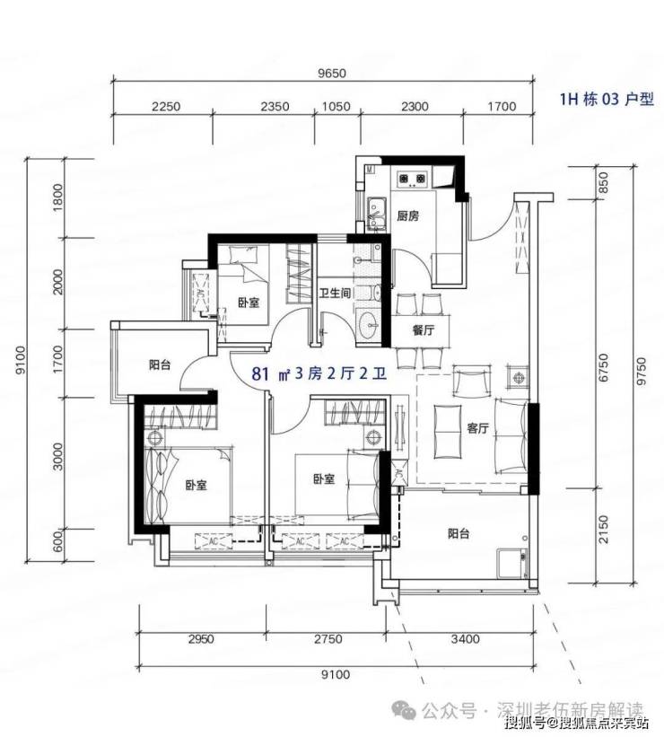 81-82m²3房2厅2卫,有竖厅和南北通户型,客厅开间3.3-3.4米,都有阳台改主卫以及增加客厅进深改造,赠送后得房率在92%左右。