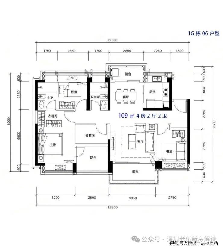 109m²4房2厅2卫,有竖厅和南北通户型,双阳台设计,客厅开间3.9米,都有阳台改卧室以及增加客厅进深改造,赠送后得房率在93-95%左右。