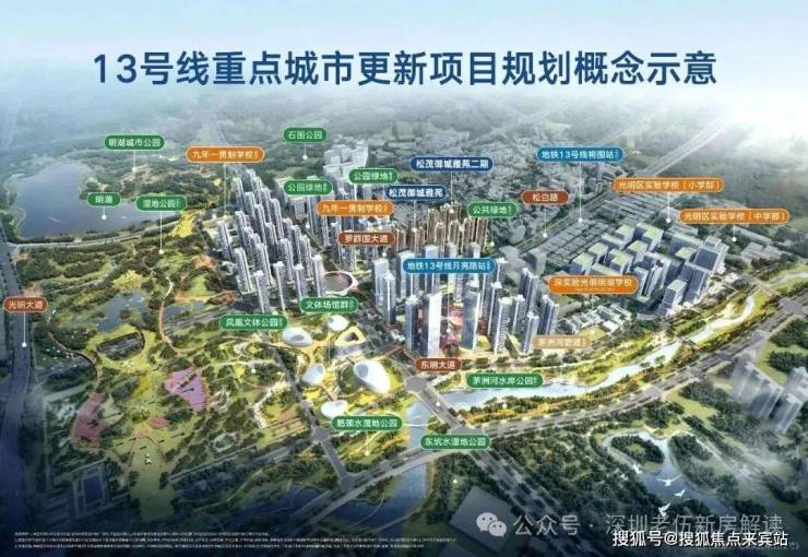 松茂御城交通优势显著,距离在建的13号线月亮路站仅约400-600米,预计2025年底-2026年通车后,1站可达光明中心区,直达南山科技园,3站到光明城站,5站到石岩上屋站。