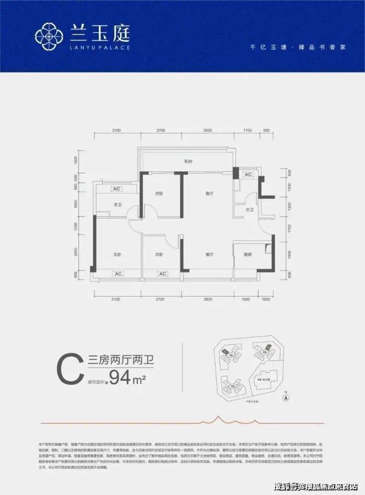 94㎡的3房2厅2卫,折后总价281-305万/套,单价2.98-3.23万/㎡。