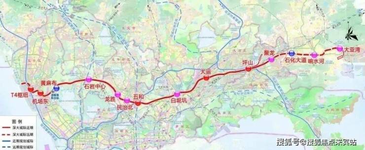 另外项目旁还规划有深大城际“龙胜站”,3站即可到达宝安机场东,该线路全线长约69.2公里,目前仅深圳段动工,是由宝安T4开往惠州大亚湾,途径宝安区,龙华区,龙岗区,终止坪山聚龙站,总设站11座,设计时速160公里,预计在2026年开通运营。