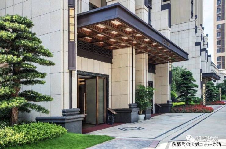 项目本身打造很奢华,深褐色与淡黄色真石材外立面,价值不菲的罗汉松主题园林,对称式皇家园林布局,十分古典大气有排面,颜值颇高不落俗套。