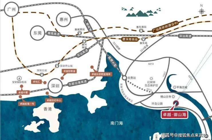 环岛路:稔平半岛环岛路总投资4.1亿,设置双向四车道,卓越御山海作为环岛路进入双月湾的首站项目,为度假提速,为假期增值。