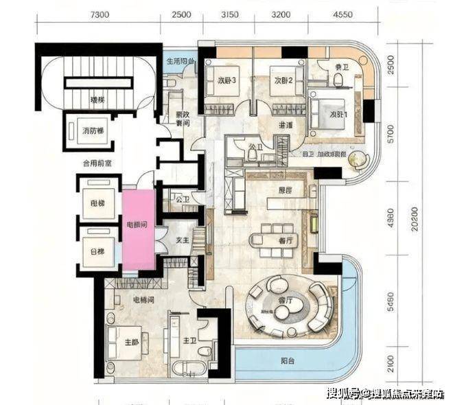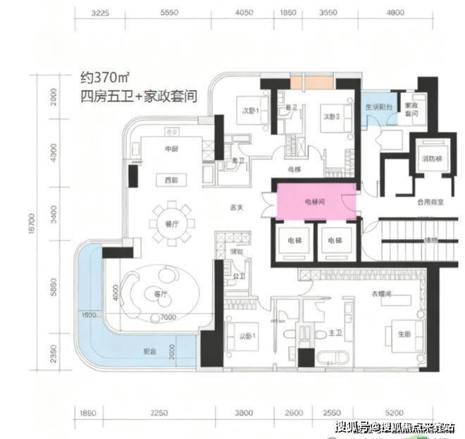 面积:211-218-302-370-512㎡大平层(还有4套518-655-938㎡顶复)