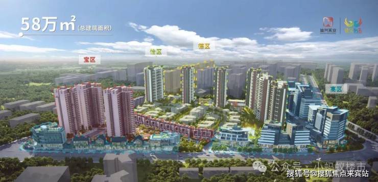 【 综合城 】项目由德、宝、怡、高四个功能版块组成,将产业、商业、人居相互融合,整体划分为德宝怡高商务区和生活区。