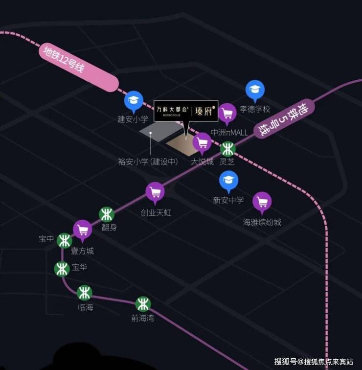 地铁5号线/12号线,交汇灵芝站,地铁2站宝中,5站前海湾站,多维一体;创业二路主干道通达,纵贯宝安黄金发展轴心