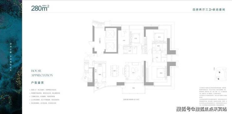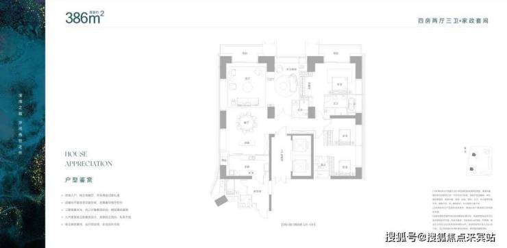 专梯入户可以利用做玄关和鞋柜,典型的现代大平层设计,餐客厨阳台(LDKB)一体的动区,分中西厨。中厨连通家政套间,门面和尾端互不干扰。