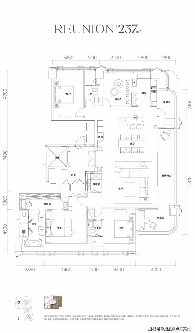 主力户型为197-235㎡大平层,主打T2/T3楼型。