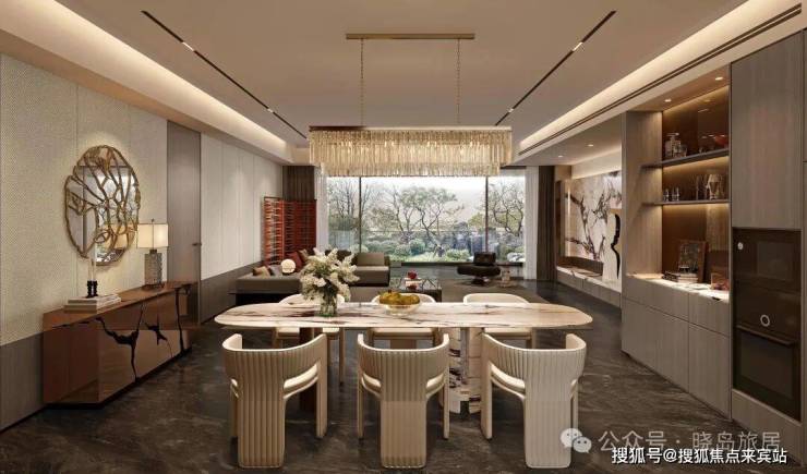 公区以海派为笔触,染现代之气韵,融汇成一方优雅生活的序章