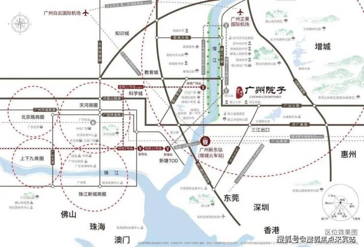 广州向东,深圳向北,湾区枢纽所在,广深莞超级城市群几何中心,随着广州东进,千亿城市经济与基础设施红利驱使,未来将成为湾区资源大盘。