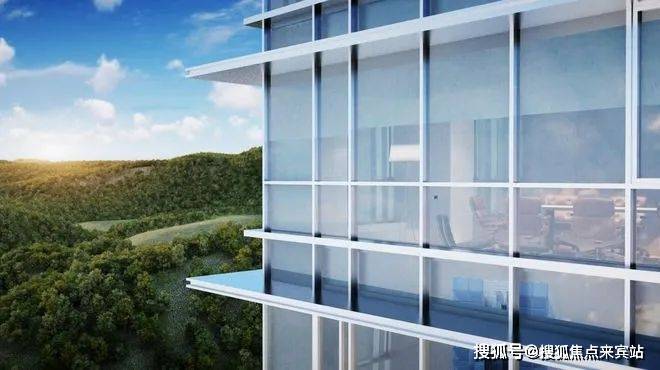 流线型美学立面,采用深灰色铝板和LOW-E中空落地玻璃幕墙,节能、隔热、降噪;