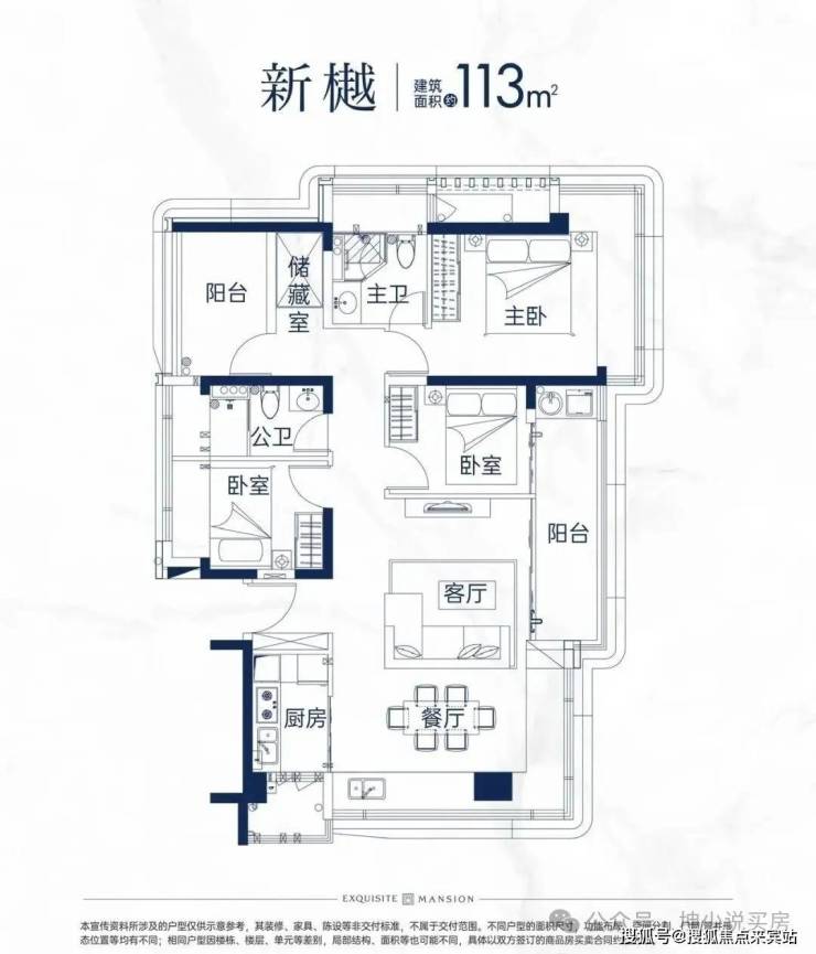 113㎡的4房2厅2卫,设计的是横厅南北通透格局,同乐公馆售楼处热线:400-892-2273进门入户玄关,客餐厅一体化设计,餐厅位双飘窗无敌视野,全屋6个飘窗面,客厅连接次卧出5.6米长的巨幕大阳台,L型厨房带1个设备平台,卫生间干湿分离也带1个设备平台,得房率约94%(包含赠送),正东朝向。