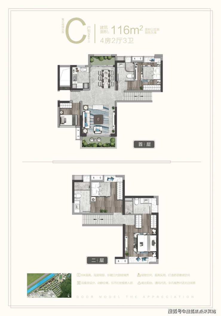 绿地杉禾田晶舍,推出的正是广州罕见的咬合复式,其建面约100-116㎡,且全部打造为南向四房。