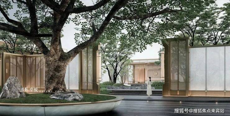 一进·东方府门,承载宾主、内外之礼;二进·山水隐园,续写东方美学画卷;三进·禅意雅境,拾趣岭南东方韵味会客厅,诠释东方礼序文化,体现东方威仪的门第风范。