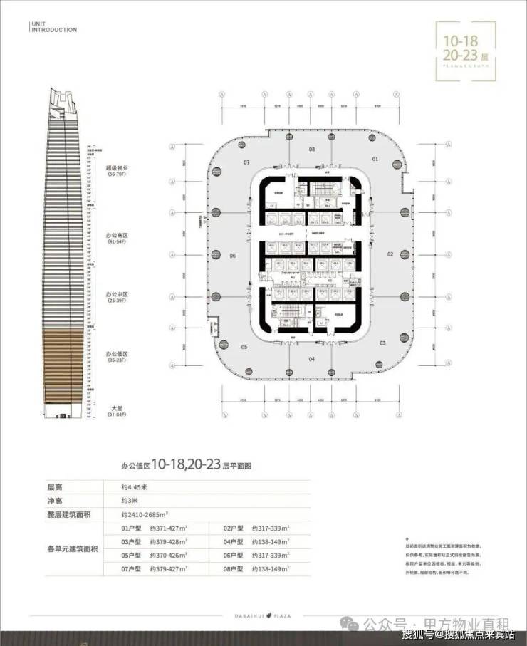 办公区域采用灵活多变的开放式设计,标准层面积为1800 - 2800㎡,可根据 企业不同需求进行个性化定制,满足各类企业办公空间需求。