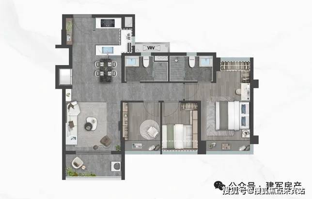 80㎡的3房2厅1.9卫,设计的是竖厅格局,客厅开间3.4米,LDKB一体化,S墙设计预留冰箱位,U型半开放式厨房,创新式1.9卫设计,得房率:78.99%(不含赠送),有西北、西南、东北、东南4个朝向。