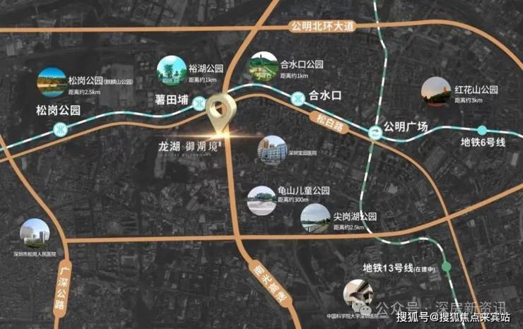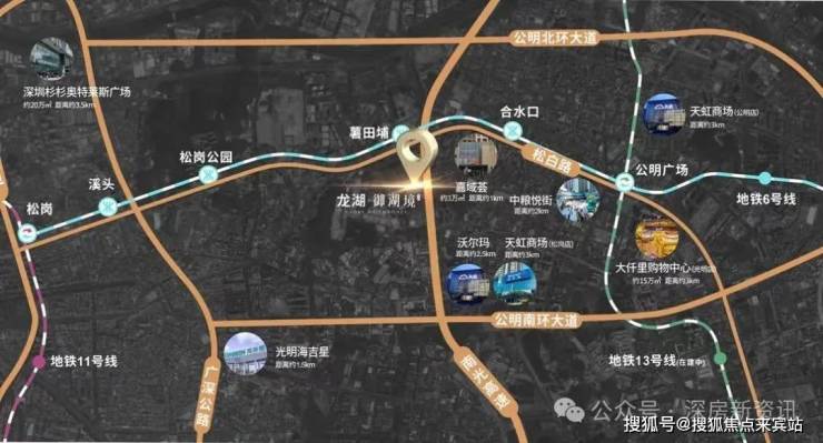 项目距离6号地铁线“薯田埔站”约300米、两站接驳13号线(在建)、三站换乘11号线,2干道主脉,光明经济发展轴松白路在侧,贯穿全区;约1km瞬达南光高速入口,直达南山。