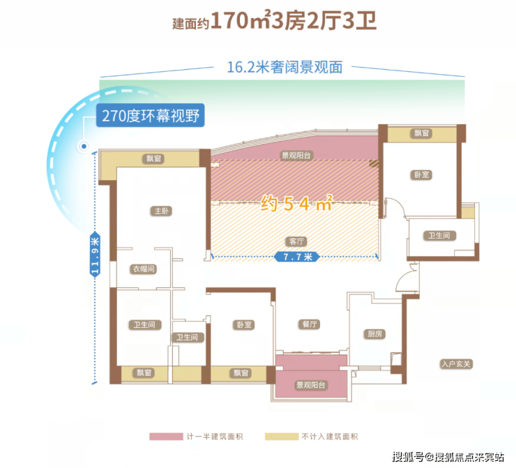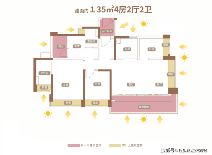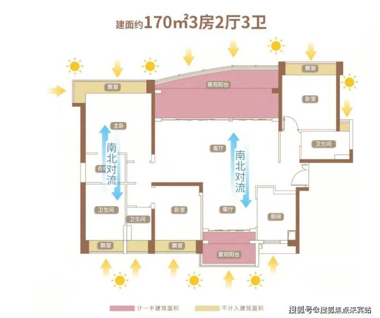 一方面,户型有着超高的光景采用率,细数一下,足足有10个采光面!