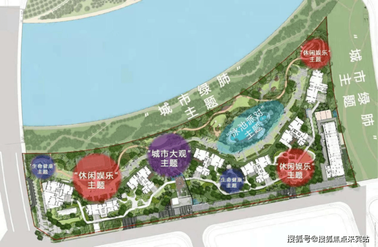 看下图,河湾公园的滨水景观带在家门口展开,一直延伸到整个项目。