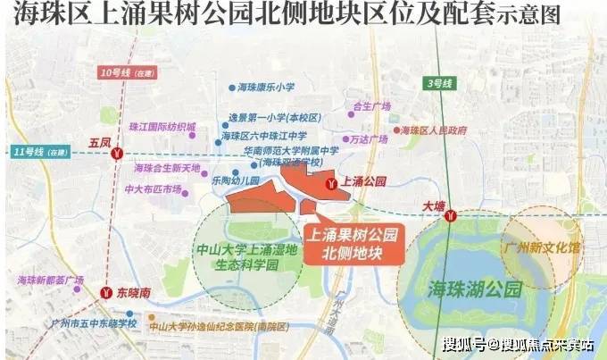 项目位于广州新中轴南段,紧邻地铁 11 号线上涌站(预计 2025 年底通车),步行约 225 米即可到达。