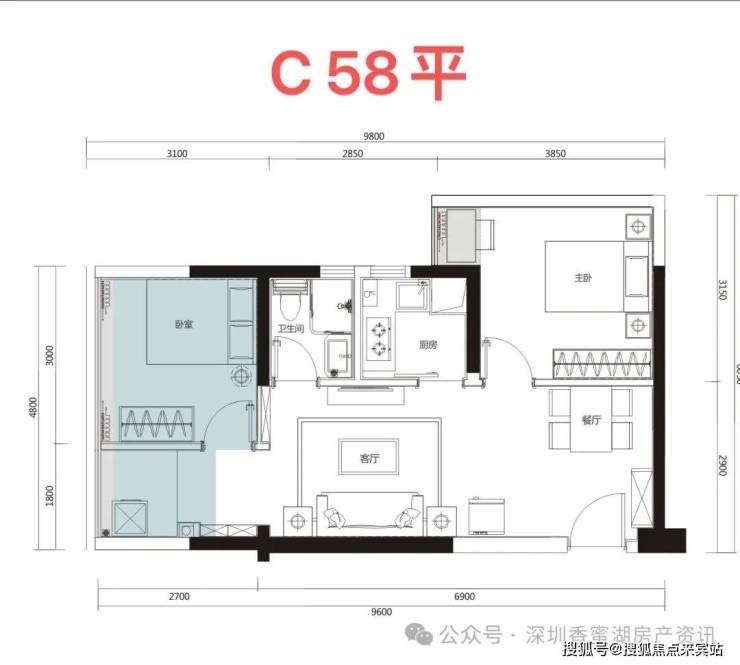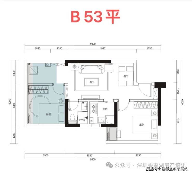 在售户型:约52-75㎡2-3房,位于B座45-46层高楼层,全屋高标精装配置齐全