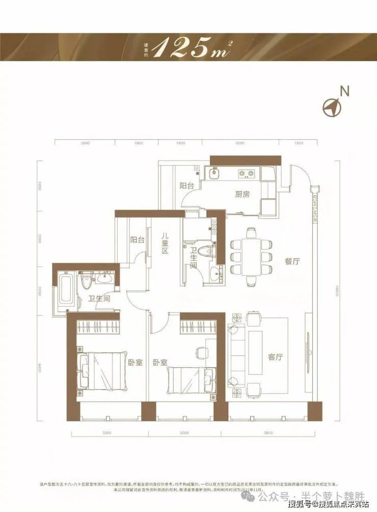 面积:85-89㎡2房1卫,90㎡2+1房1卫,125㎡3房2卫