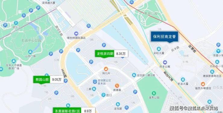 项目旁边就是建面约4.7万㎡南园公园,半径1公里内还分布有深圳北站中心公园、逸秀公园、白石龙音乐公园等(百度地图测距)。