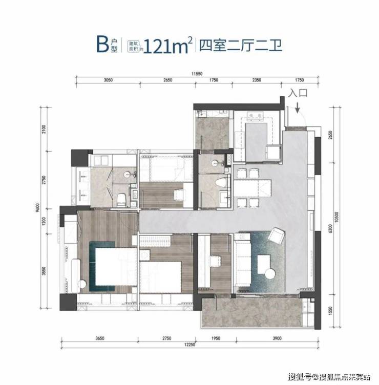 3、户型实用率高:项目为新规后高得房率住宅,打造约90-143㎡三、四房,使用率较高;