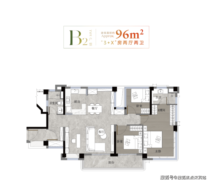 96㎡阔绰三房适配改善家庭,双阳台+大面宽设计满足生活体面;