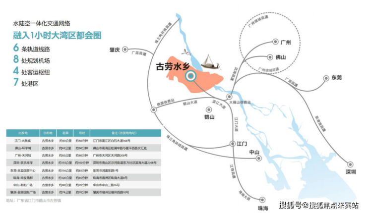 依托优越的地理位置优势,项目享水陆空一体化交通网络,融入1小时大湾区都会圈: