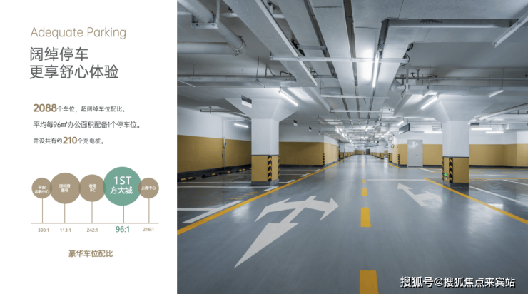 6、停车无忧:地下四层停车空间,配备新能源充电桩 | 2088个车位 | 96㎡:1超高配比
