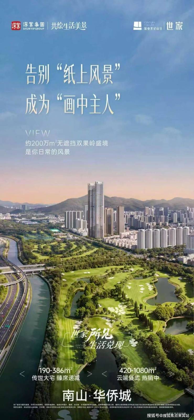* 天赋贵地:千亿国企深业严苛择址观,屹立深湾中轴、华侨城贵胄之地,揽纳果岭盛境,重塑当代高阶豪宅格局。