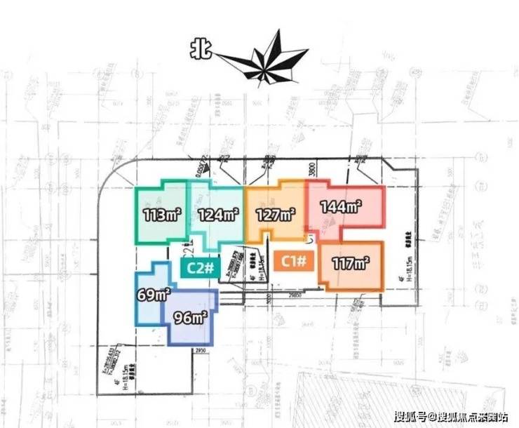 C2栋:户型分为东向的124㎡及113㎡、南向的96㎡、北向的69㎡。