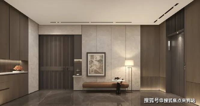 这套建面约270平的户型,两个电梯都在同一侧,入户电梯厅更像华润悦府的标准层入户电梯厅,更阔绰舒适。
