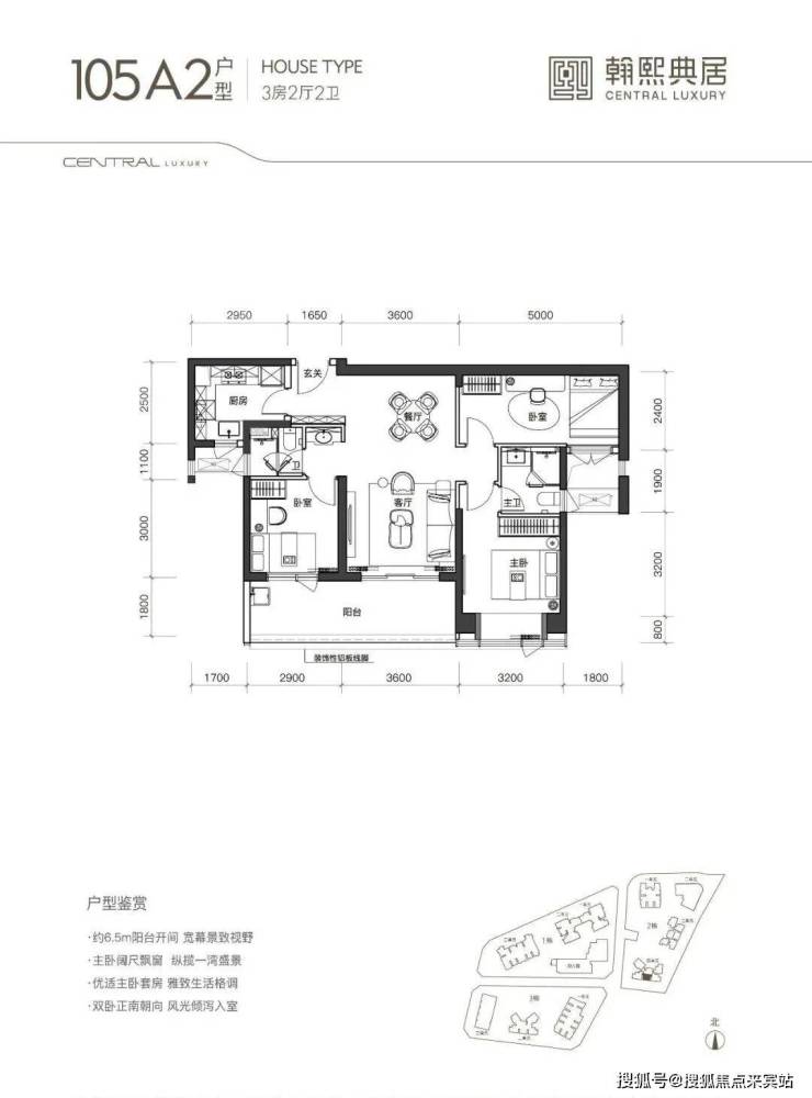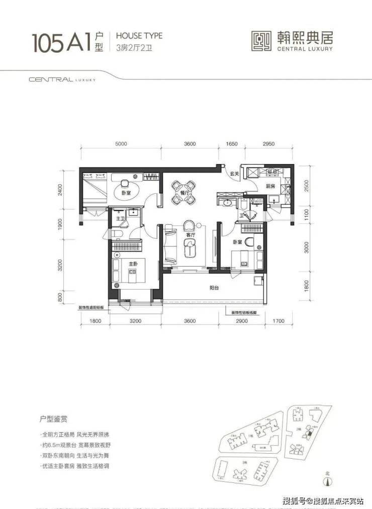 105㎡有两个户型,分别为A1双龙抱珠以及B户型传统竖厅