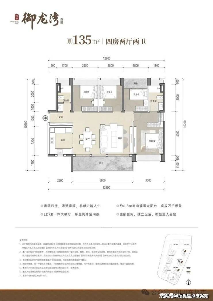 135㎡四房两卫:总价约500万起,横厅南北通透,客餐厅开间6.8米,四开间朝南,改善家庭的品质之选。
