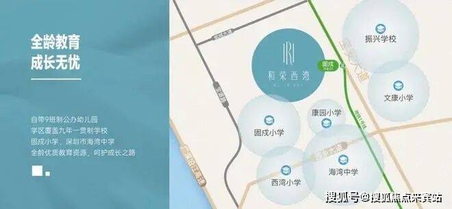 项目自带9班制公办幼儿园,学区覆盖九年一贯制固戍小学、深圳市海湾中学,启航精英人生路。