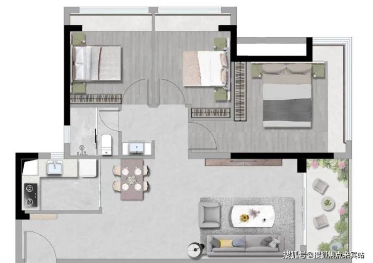 【88㎡3房2厅1卫】高实用空间:动静分明 生活井然有序L型厨房:动线流畅 让烹饪更自在客餐厨直连:通透无界 全家欢愉的生活场双阳台设计:辽阔视野纳藏无限风光。