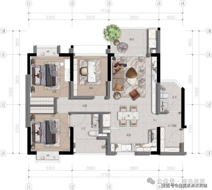 ③【B3 建面约89㎡,实际使用面积113㎡, 三室两厅两卫】